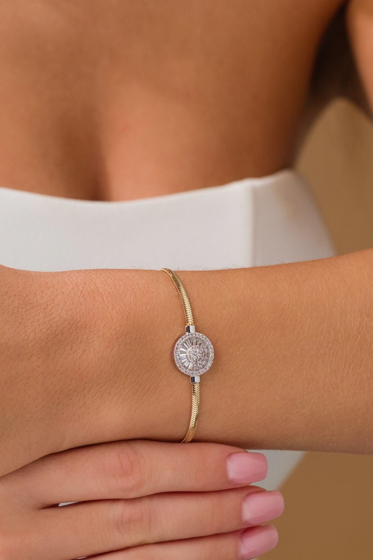 Bu şık ve zarif bileklik , 14 ayar (585k) altından üretilmiştir. Ürün üzerinde ayar damgası ve üretici patenti yer almaktadır. Günlük kullanım için ideal olup, zarif tasarımıyla her stile uyum sağlar.