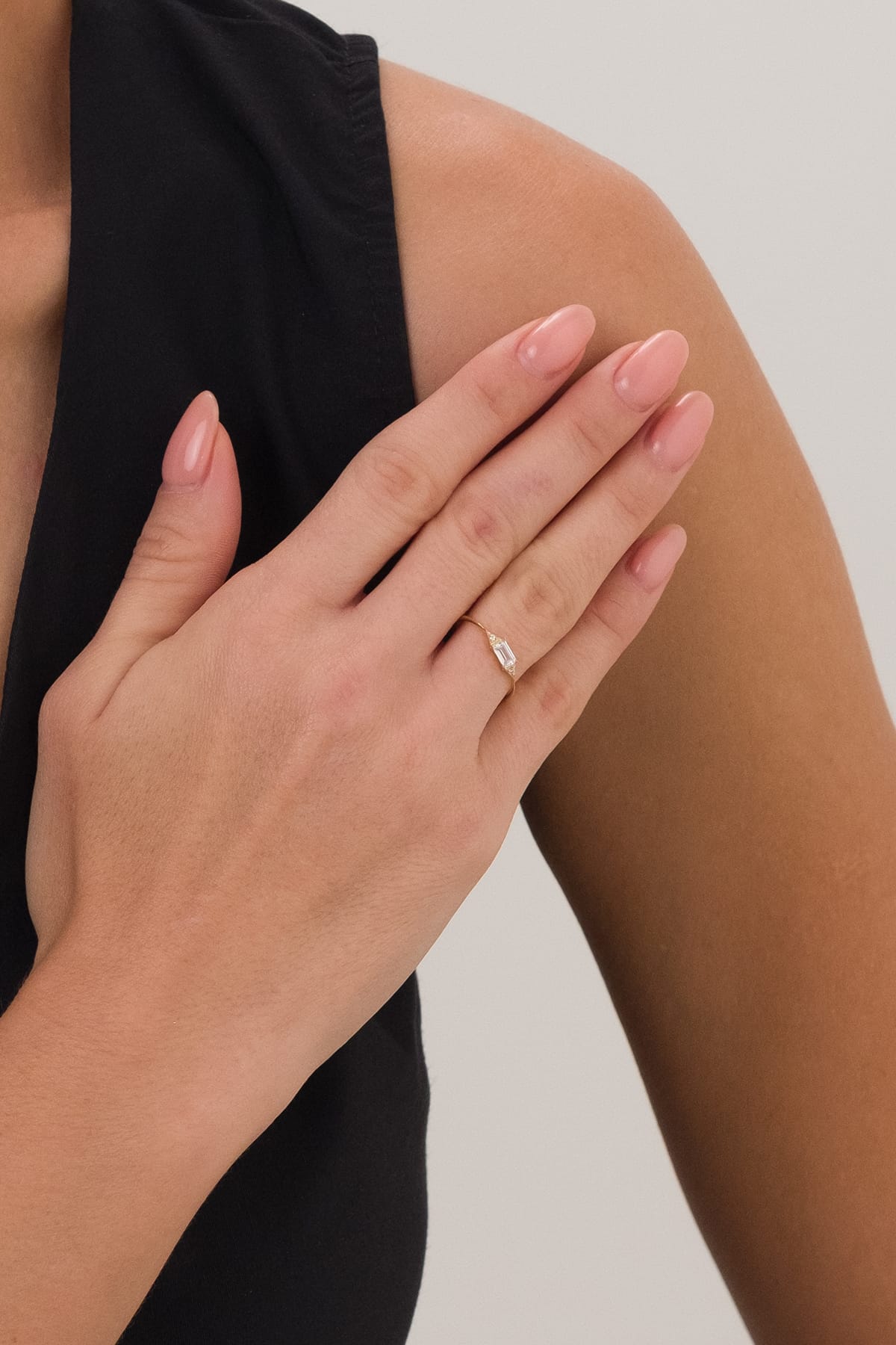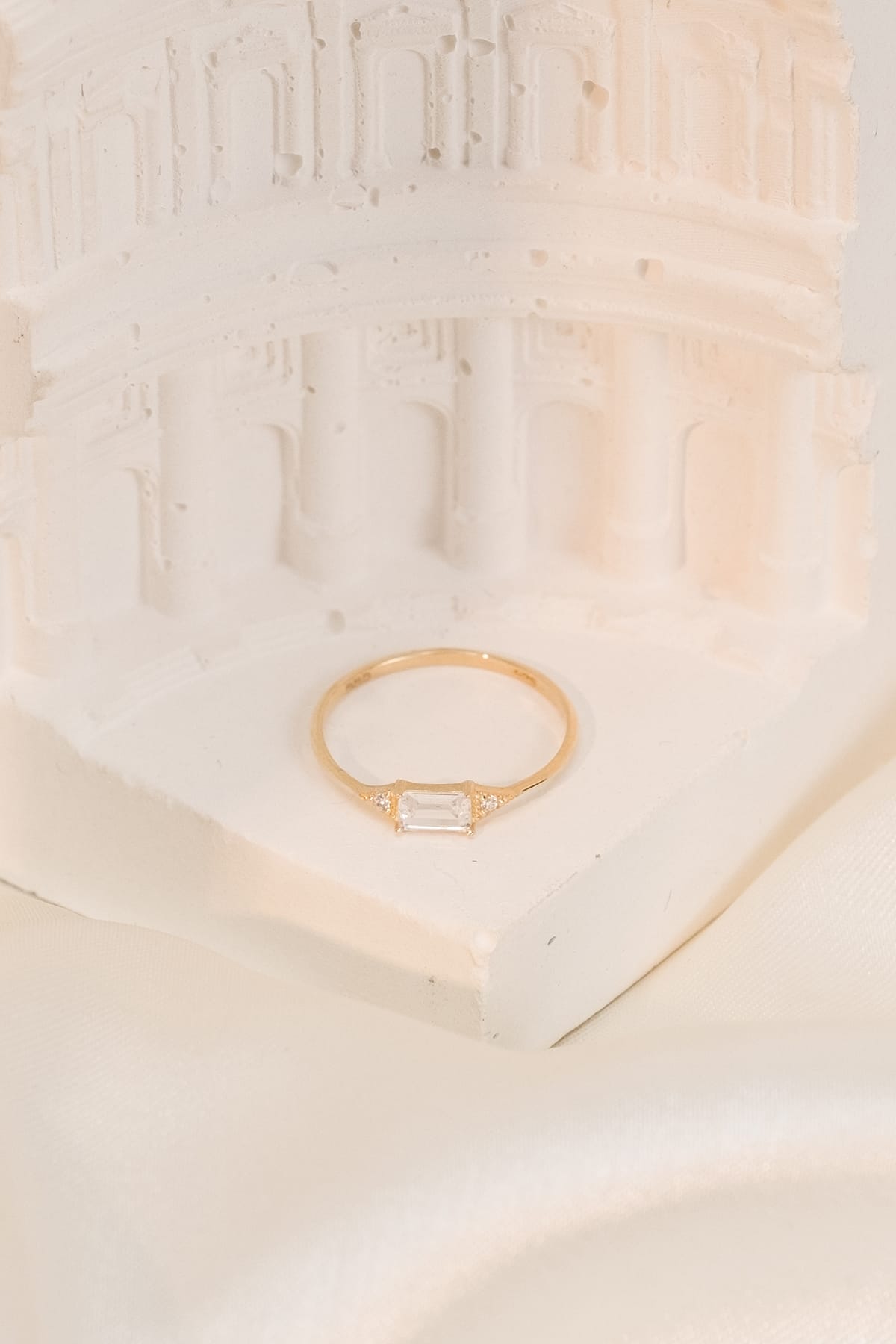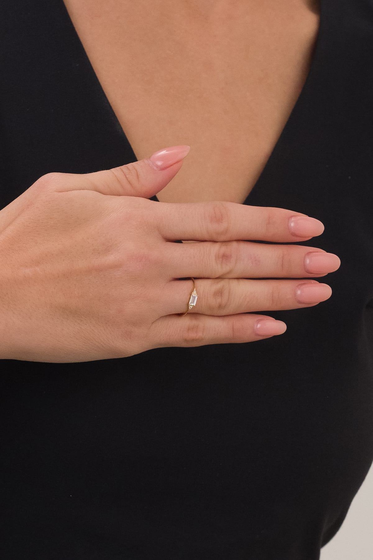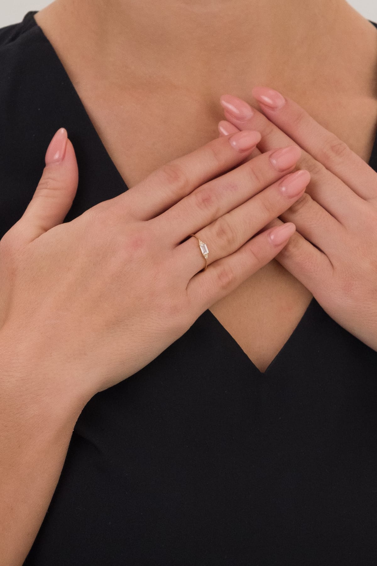 14 Ayar Beyaz Taşlı Çıtır Altın Yüzük