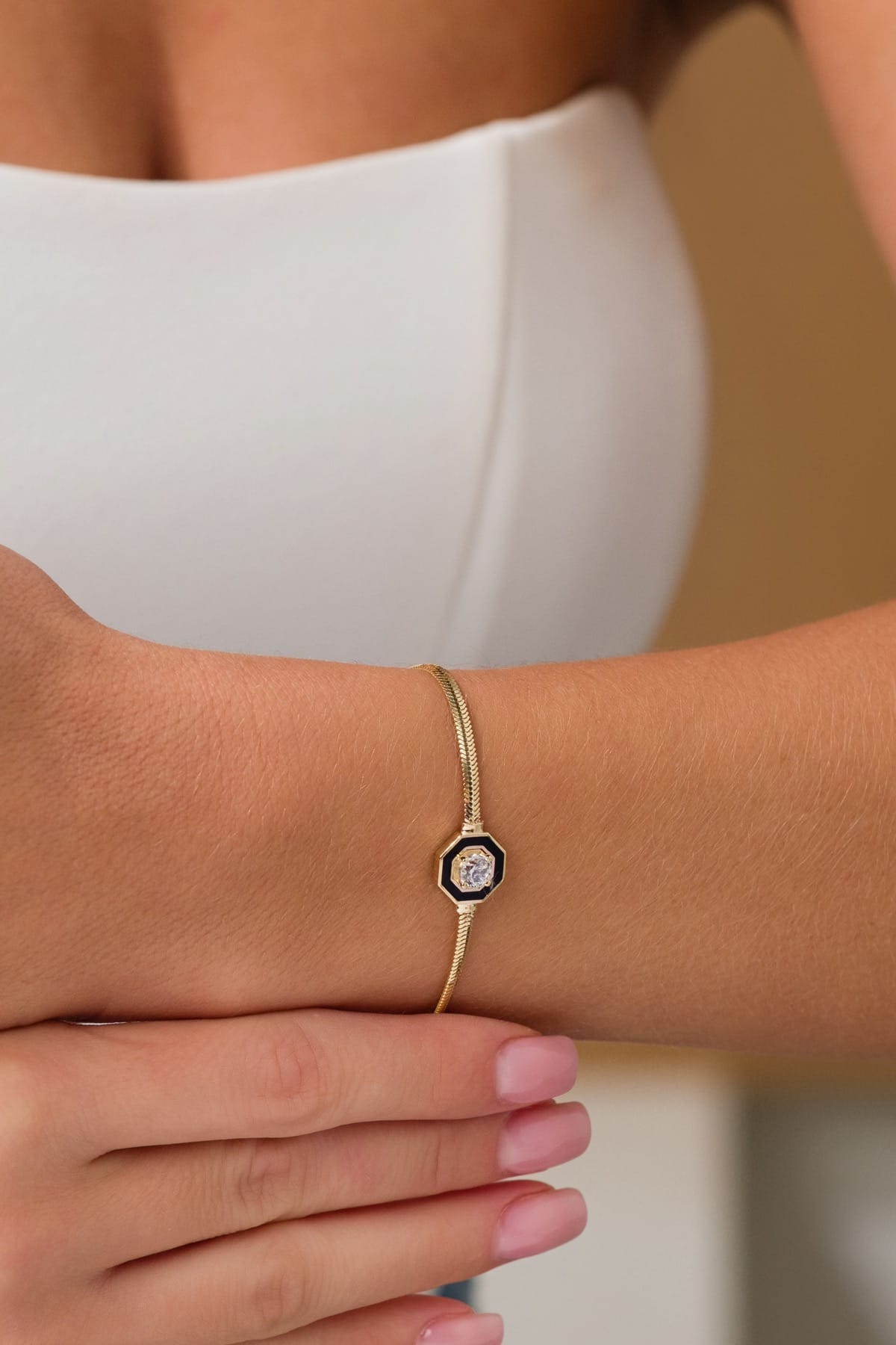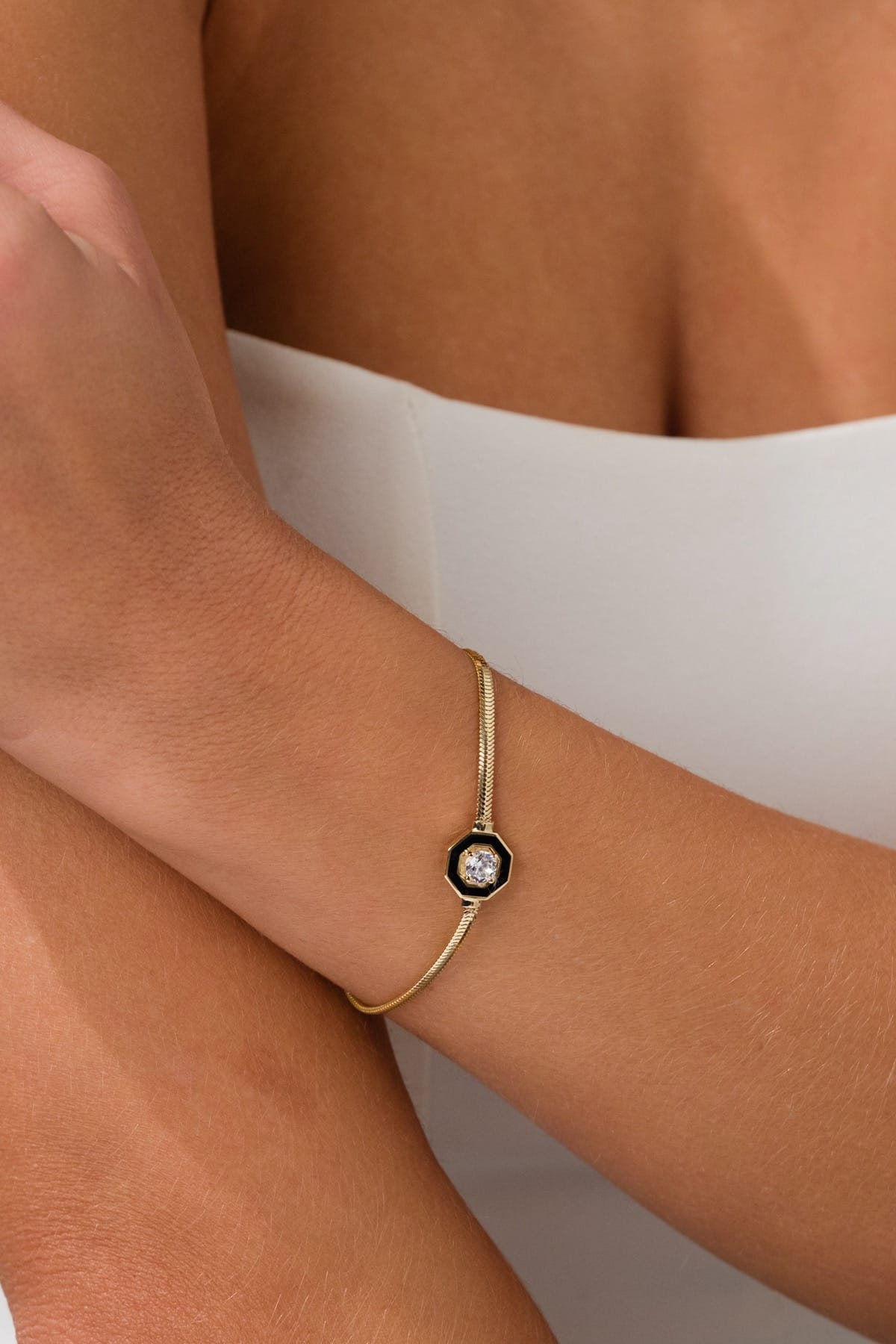 Bu şık ve zarif bileklik , 14 ayar (585k) altından üretilmiştir. Ürün üzerinde ayar damgası ve üretici patenti yer almaktadır. Günlük kullanım için ideal olup, zarif tasarımıyla her stile uyum sağlar.
