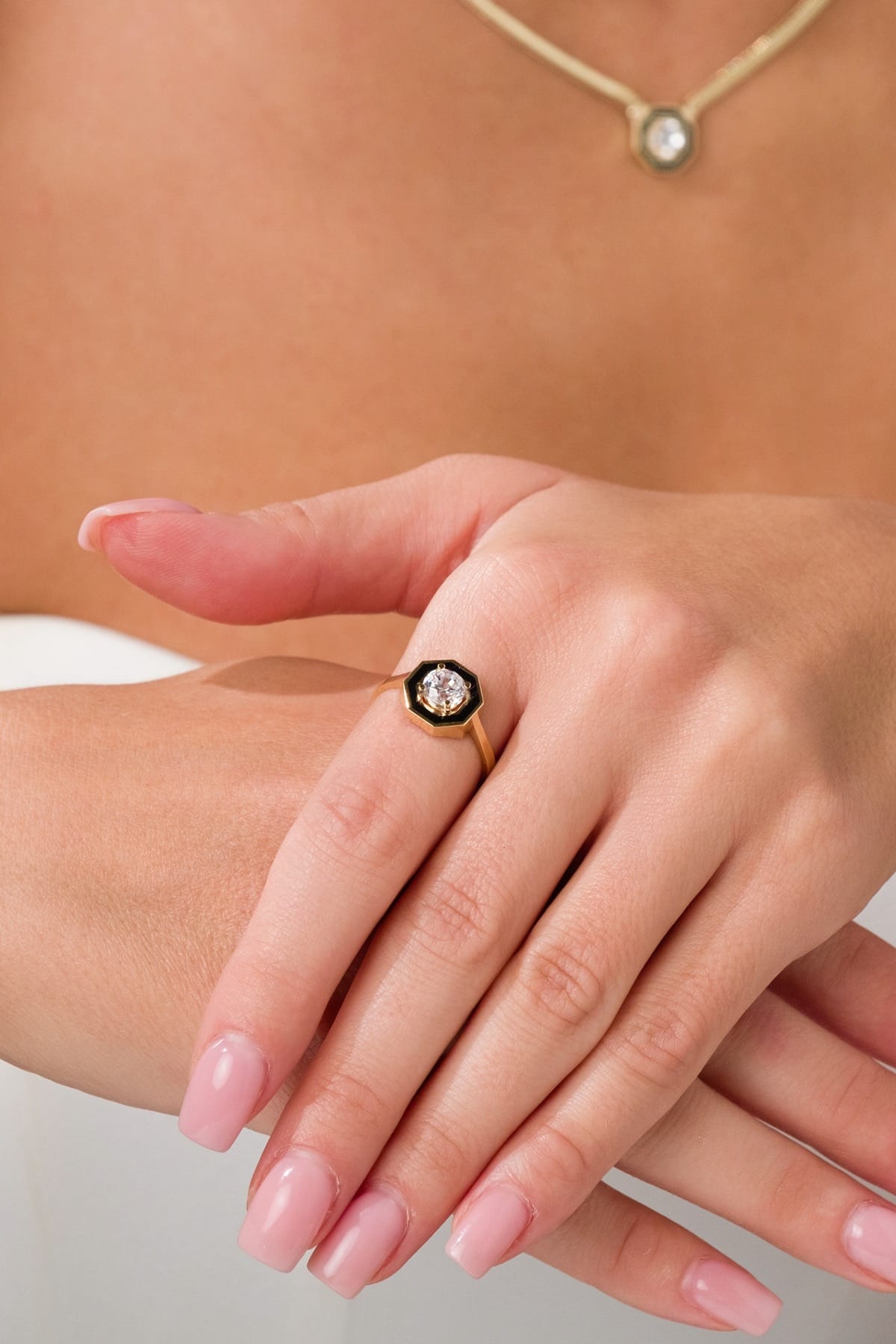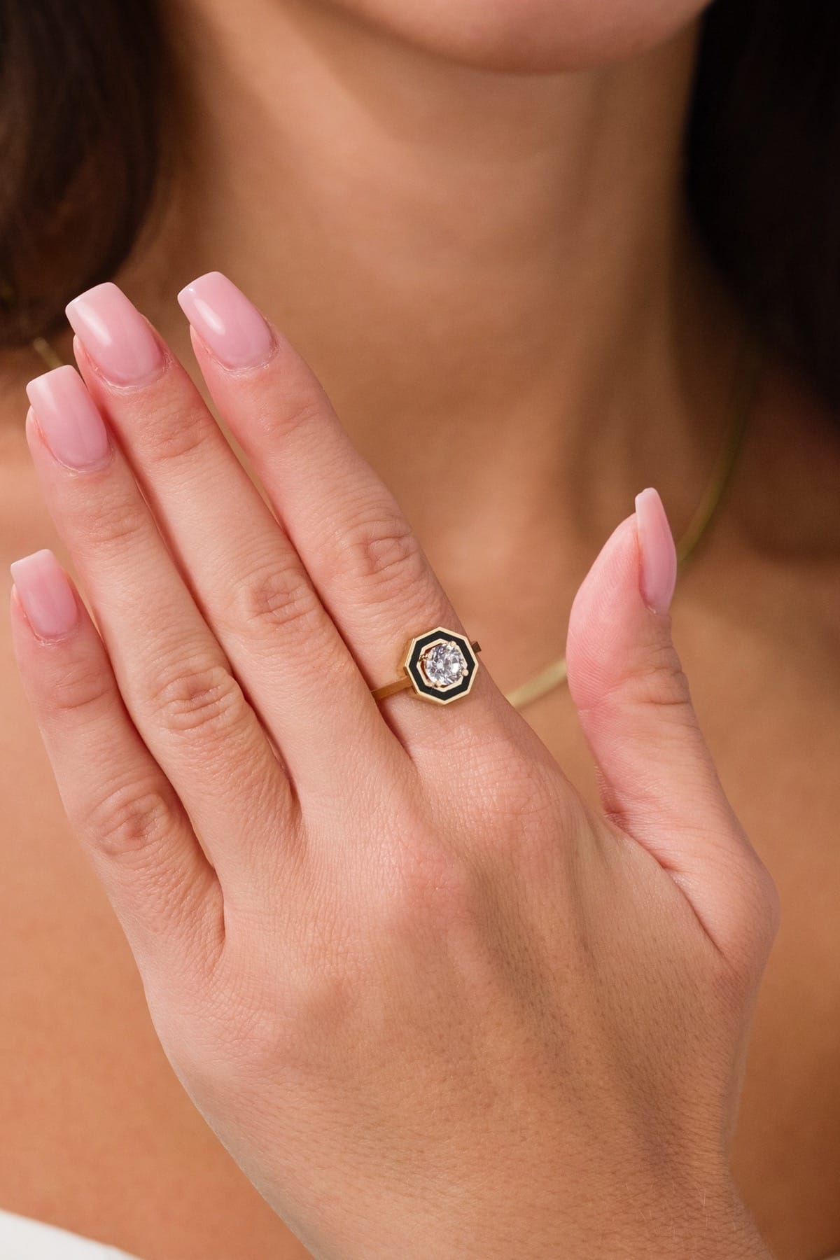 Bu şık ve zarif yüzük, 14 ayar (585k) altından üretilmiştir. Ürün üzerinde ayar damgası ve üretici patenti yer almaktadır. Günlük kullanım için ideal olup, zarif tasarımıyla her stile uyum sağlar.