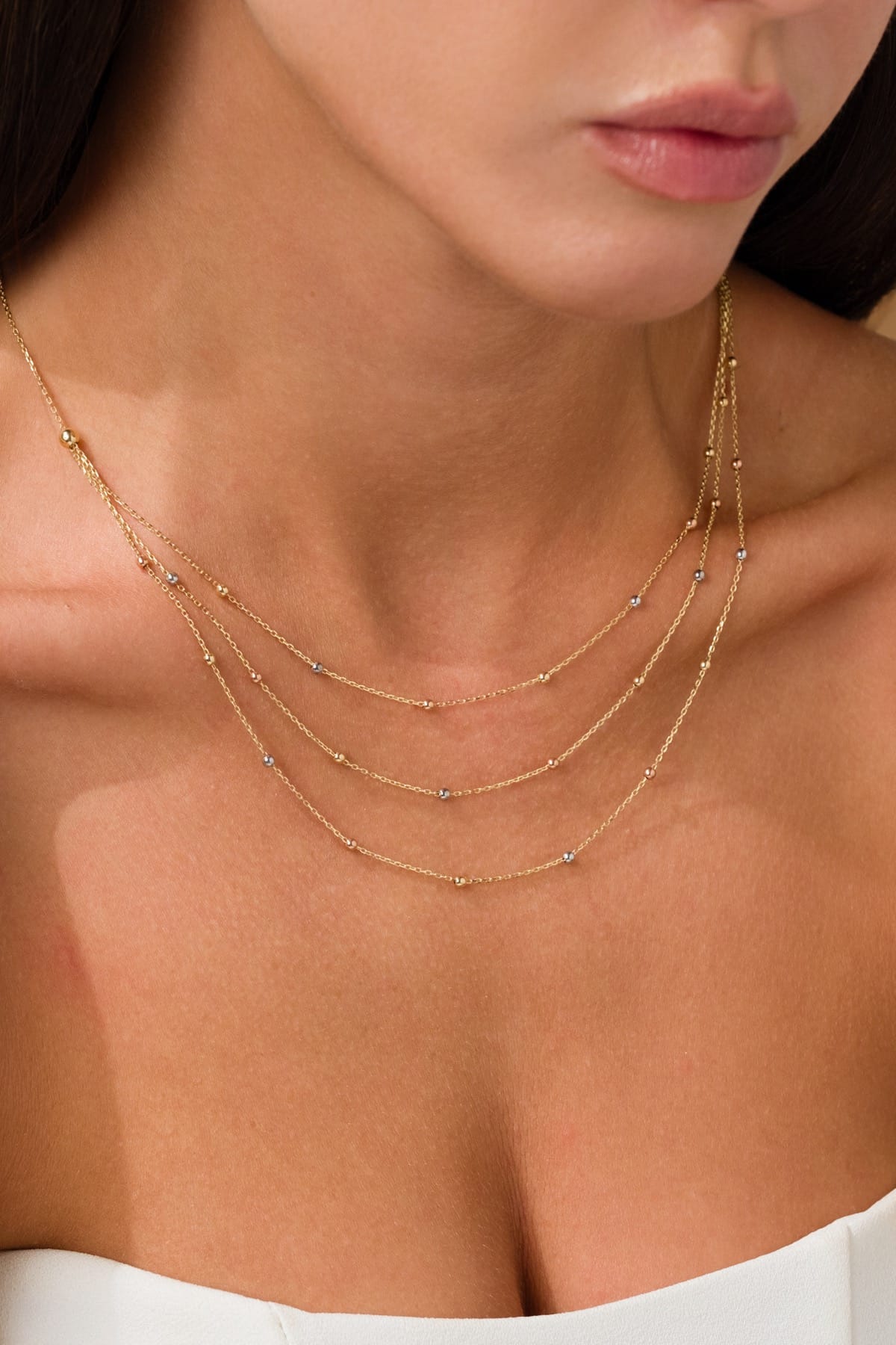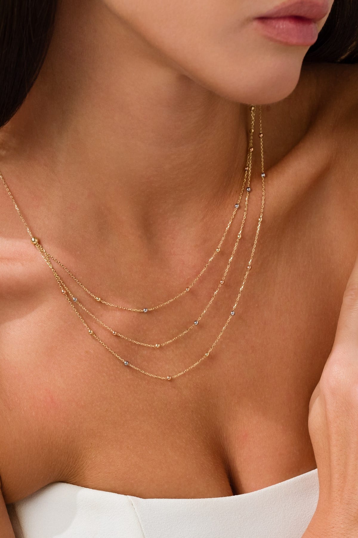 Bu şık ve zarif kolye, 14 ayar (585k) altından üretilmiştir. Ürün üzerinde ayar damgası ve üretici patenti yer almaktadır. Günlük kullanım için ideal olup, zarif tasarımıyla her stile uyum sağlar.