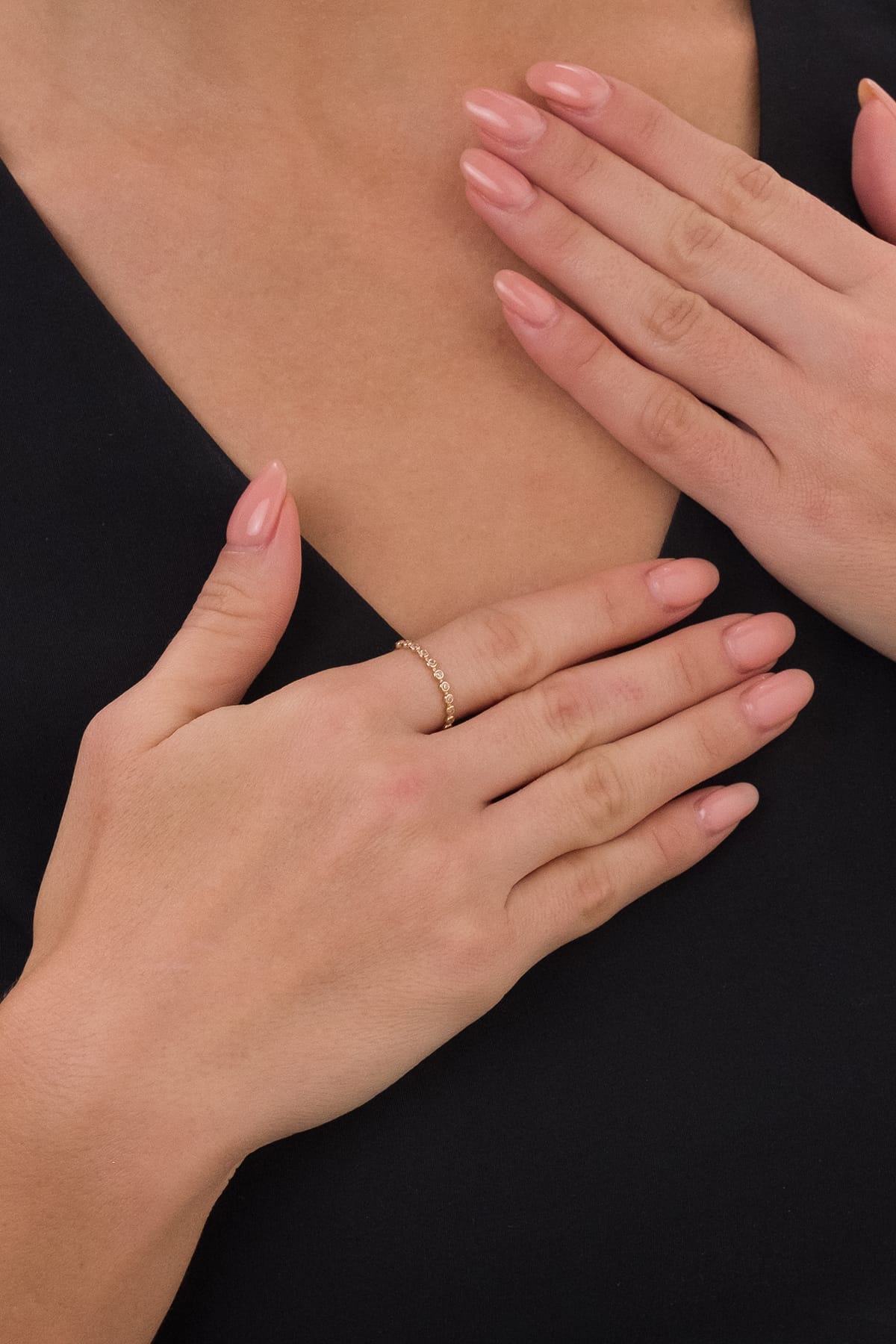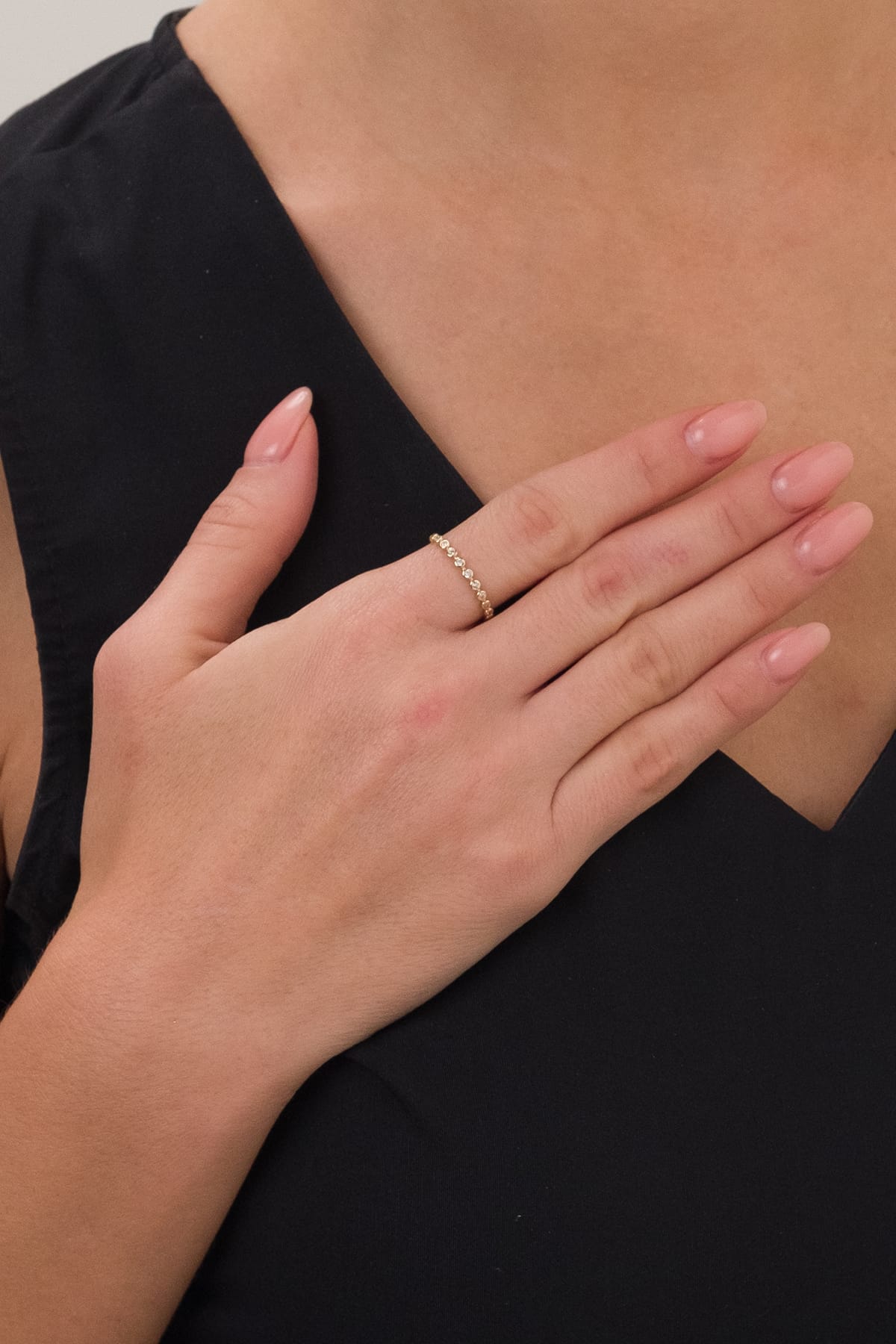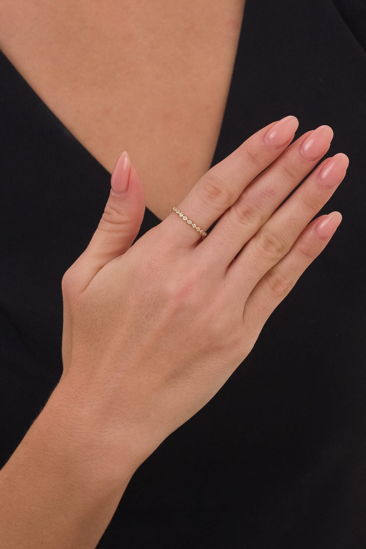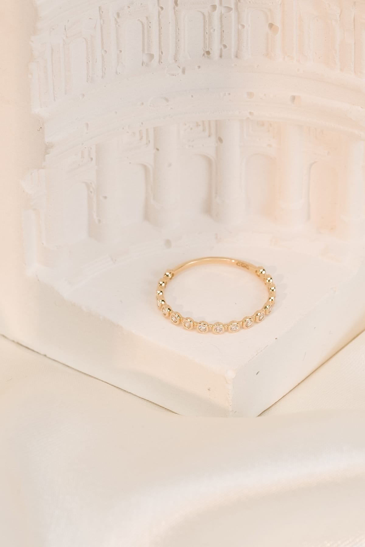 14 Ayar Düz Sıralı Taşlı Çıtır Altın Yüzük