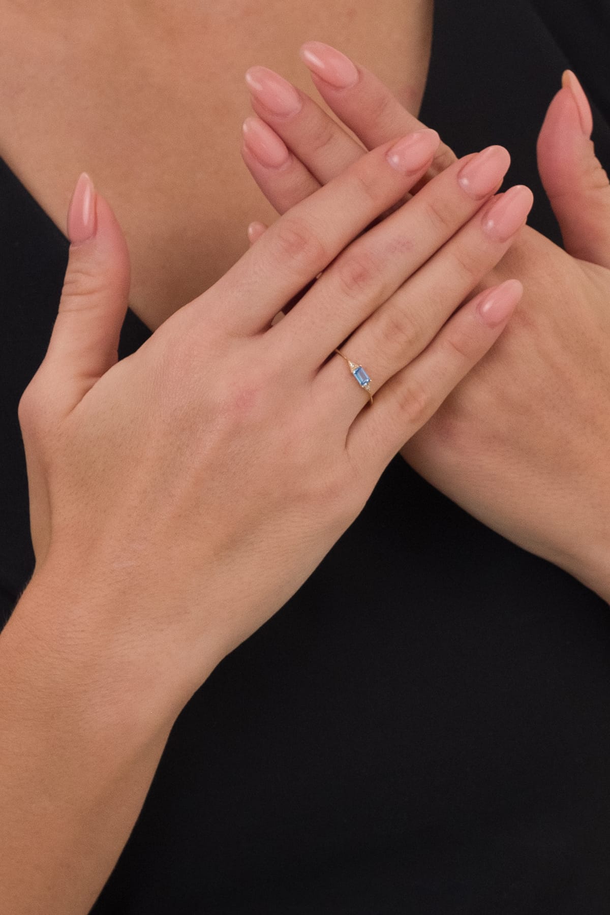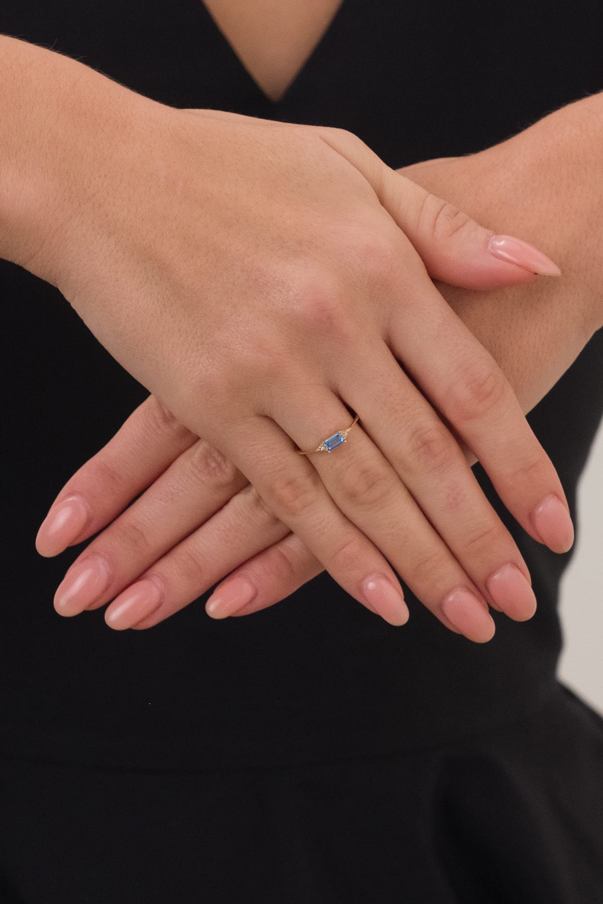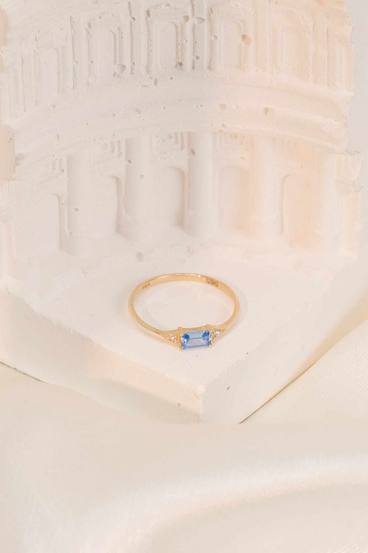14 Ayar Mavi Çıtır Taşlı Altın Yüzük