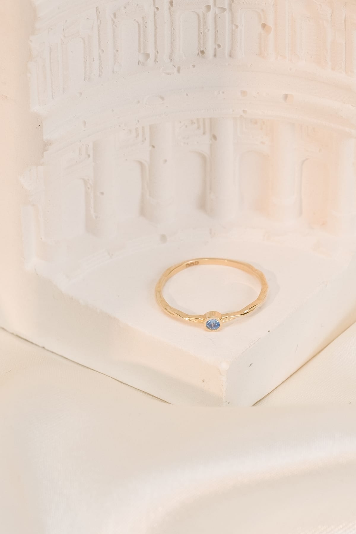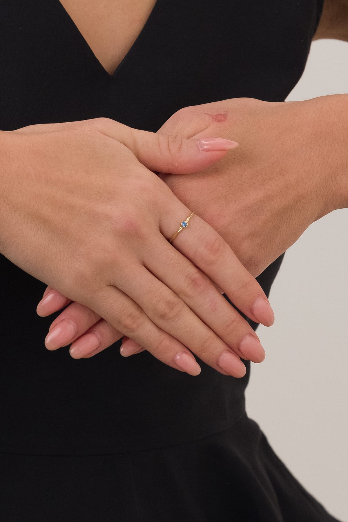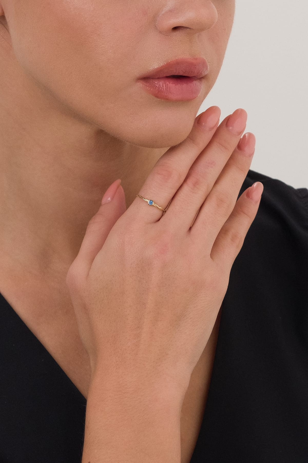 14 Ayar Mavi Taşlı Burgu Model Çıtır Altın Yüzük