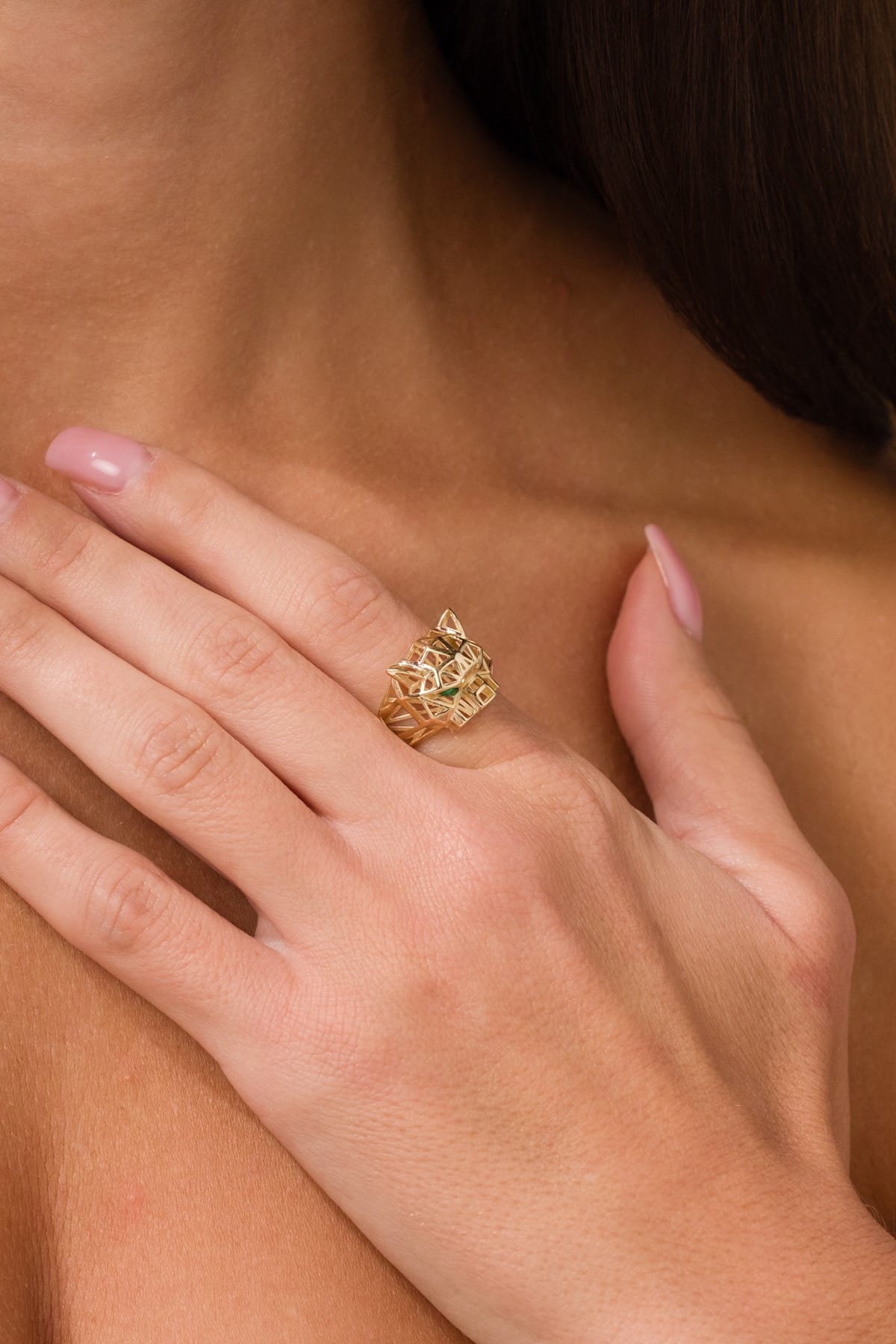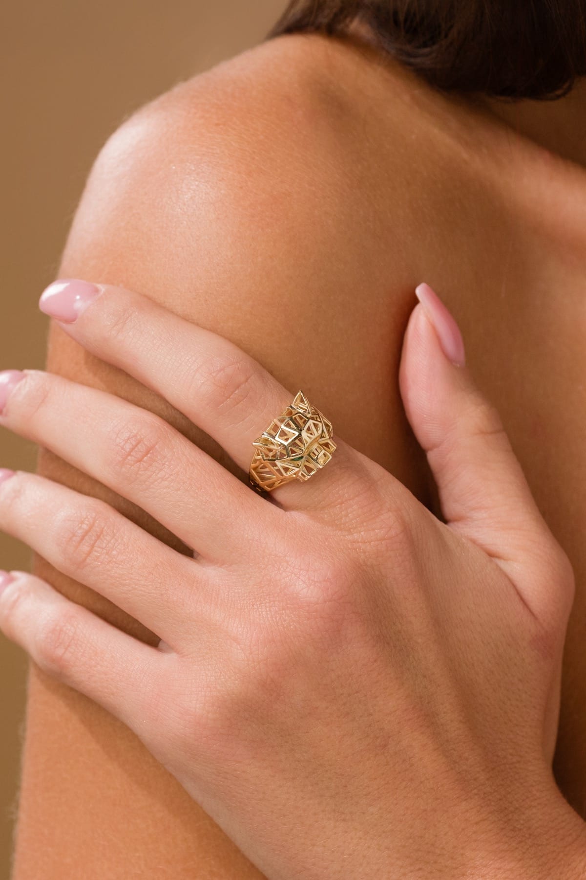 14 Ayar Özel Tasarım Kaplan Altın Yüzük