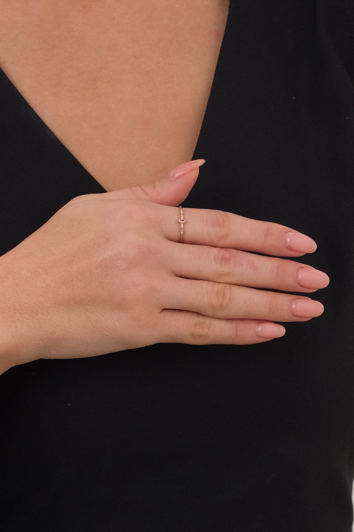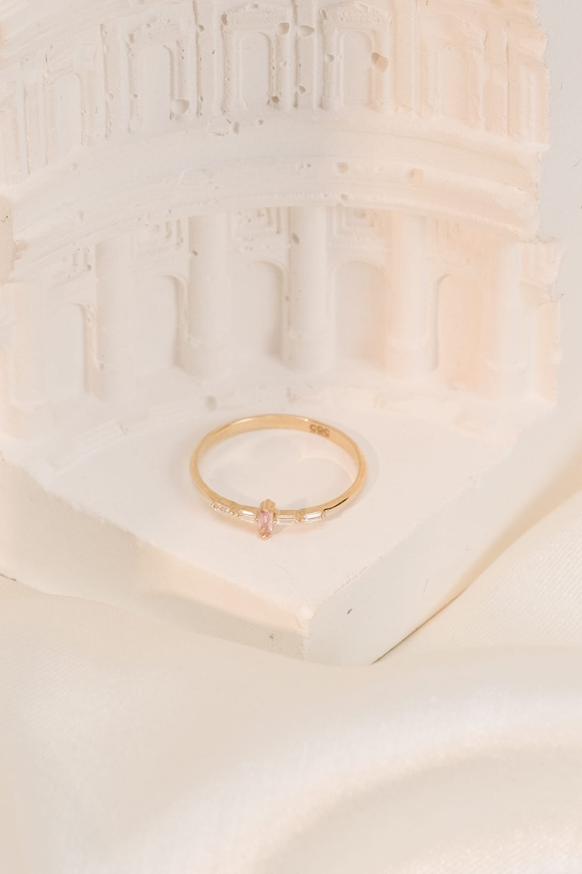 14 Ayar Pembe Taşlı Çıtır Altın Yüzük