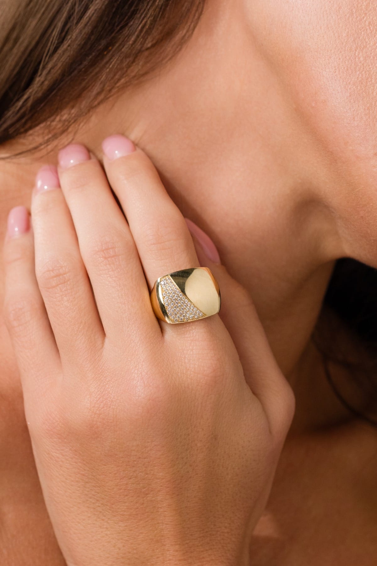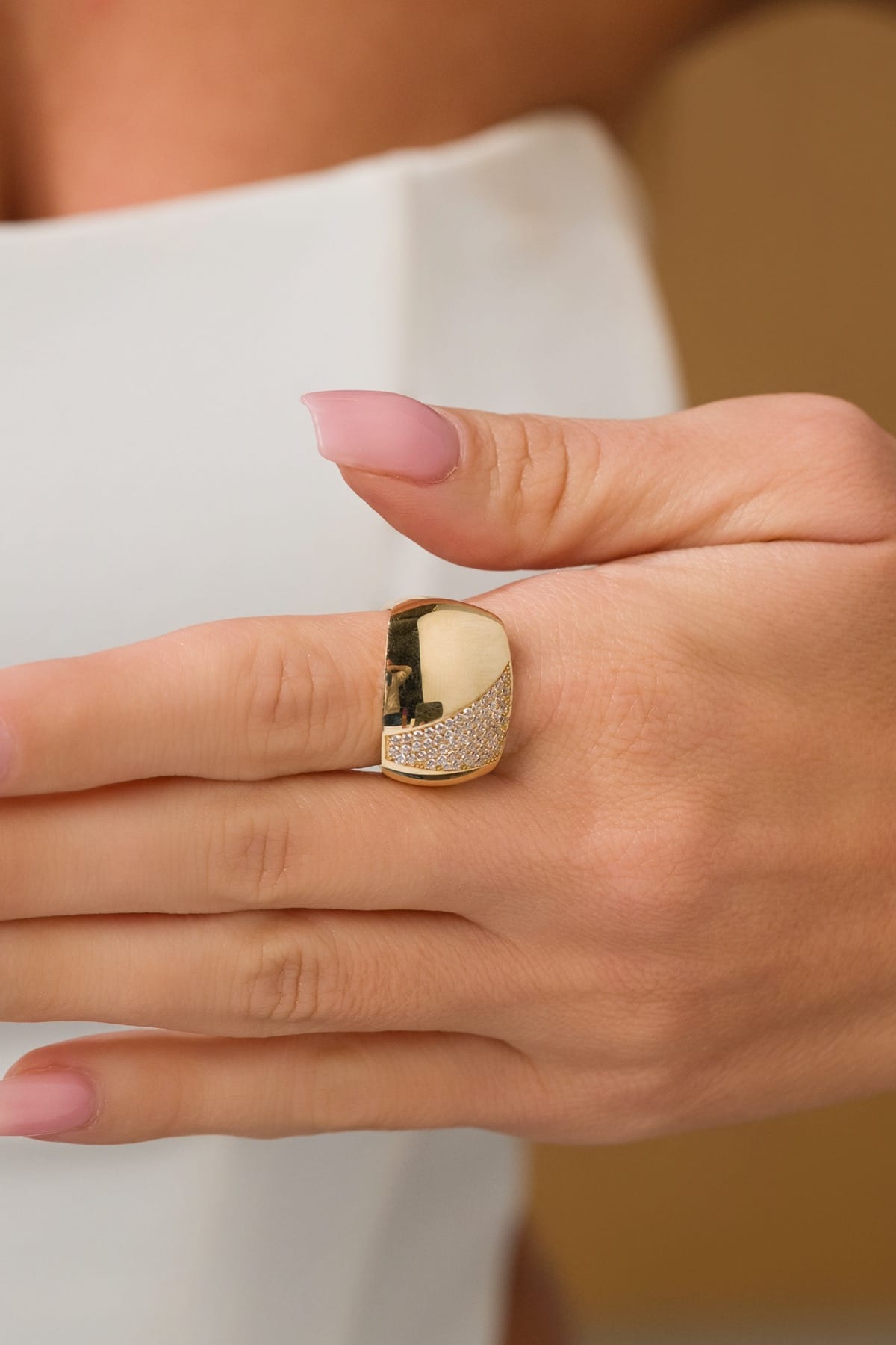 14 Ayar Taşlı Tasarım Kalın Altın Yüzük